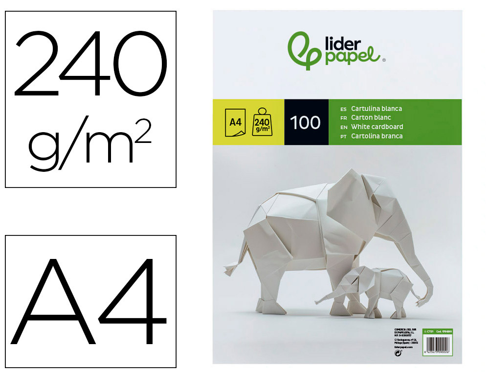 CARTULINA LIDERPAPEL A4 240G/M2 BLANCO PAQUETE DE 100 HOJAS