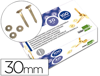 ENCUADERNADORES LIDERPAPEL LATONADOS CON ARANDELA 30 MM CAJA DE 100 UNIDADES
